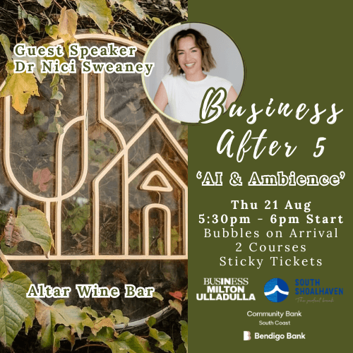 Join Business Milton Ulladulla & the@Community Bank South Coastfor a night of seriously good food & wine, and absolutely top shelf Guest Speaker(s).