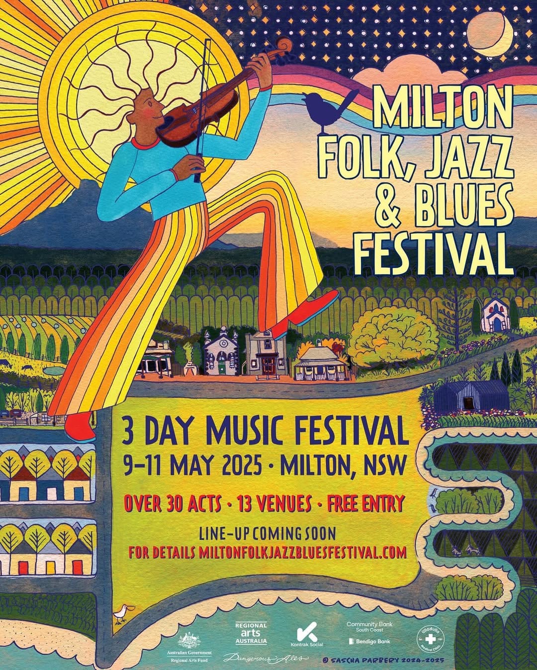 Saturday May 10, 2025 • 4:30 pm - Tuesday May 13, 2025 • 12:00 am Milton Folk, Jazz & Blues Festival Milton Folk, Jazz & Blues Festival The Milton Folk Jazz and Blues Festival is a celebration of music, community and culture. The festival will weave through Milton town and its parks, pubs and establishments over three days (May 9-11, 2025). With over 40 FREE performances, accessible for all to enjoy, at 13+ venues throughout Milton, there is endless music to enjoy.